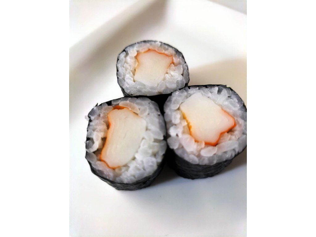 3 ks hosomaki sushi - jednodruhové sushi s krabí tyčinkou. Přidejte si do košíku i další druhy sushi dle Vašeho přání. Nezapomeňte si objednat porci wasabi, nakládaného zázvoru či sojové omáčky - tyto doplňky naleznete v odkaze SOUVISEJÍCÍ, popř. pod samostatnou kategorií SUSHI INGREDIENCE.